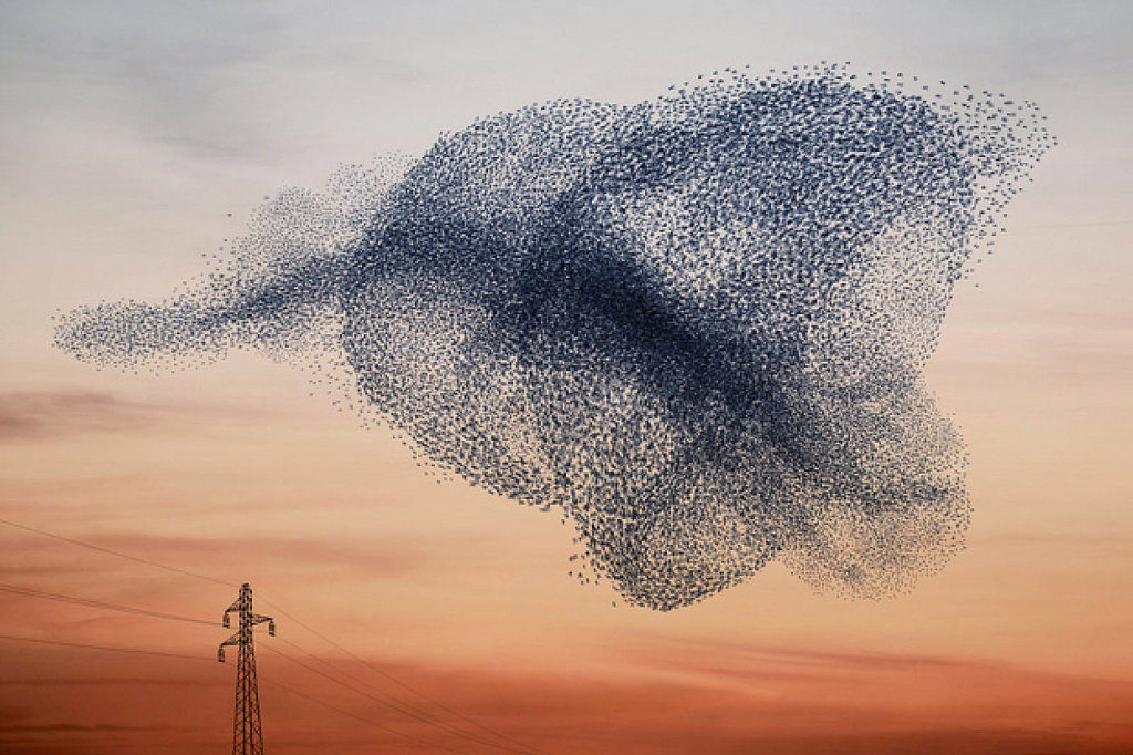 A la hora del atardecer forman grandes parvadas parecen ruidosas nubes, forman una especie de ritual del cual aún no se sabe exactamente que es lo que significa, mientras tanto los espectadores intentan descifrar los movimientos de cientos y miles de pájaros.