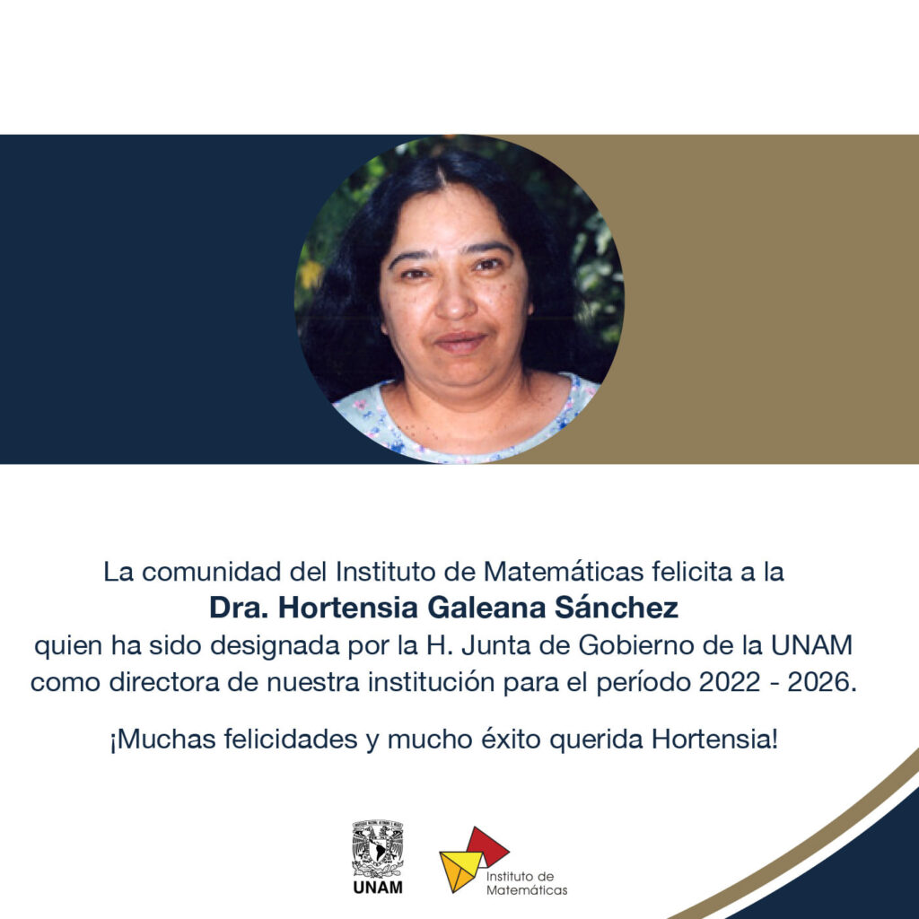 Asignada por la Junta de Gobierno de la UNAM, Hortensia Galeana Sánchez, doctora en Ciencias Matemáticas, dirigirá el Instituto de Matemáticas (IM) UNAM.
